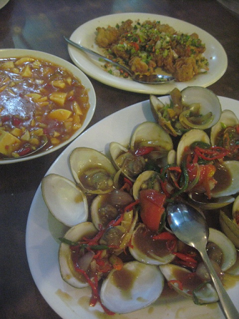 今日は、イカ・貝・豆腐料理にシーフードナシゴレン