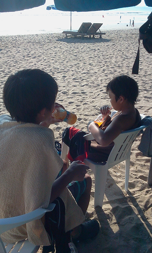 ローカルの美味しいお店で一緒にチキンを食べて、午後からサーフィン!!