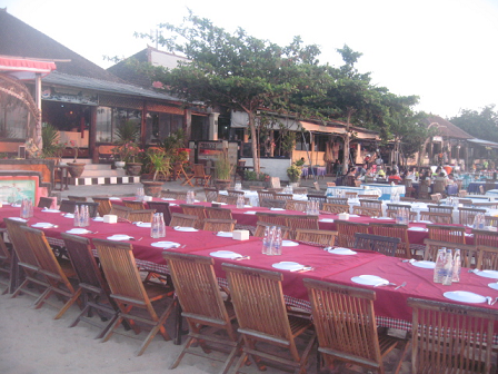 海辺のレストランでシーフードBBQディナー