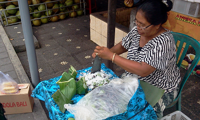 バナナの葉っぱに包んで売ってます。