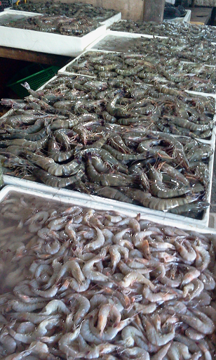 大きい魚、大きいエビ、貝、牡蠣を買いました。
