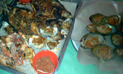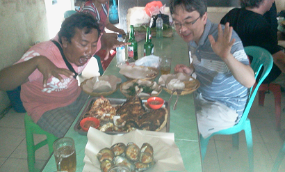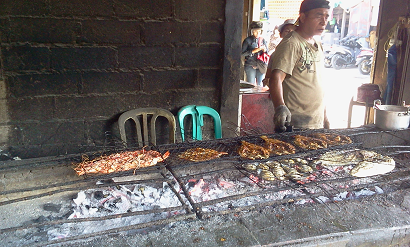 買ったものをローカルレストランに持ち込みして、焼いて貰い食べます。