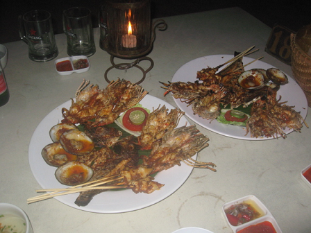 ジンバランの海辺のレストランでシーフードBBQ