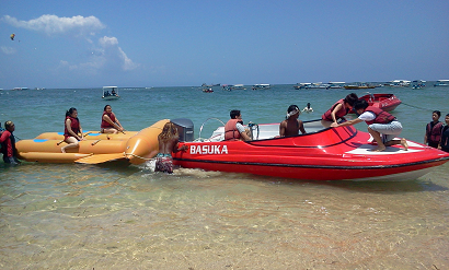 ゴムボートに乗ってモーターボートに引いてもらう単純なアクティビティですが、
