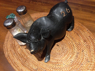 各テーブルに置いてあるブタの置物