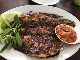 魚のBBQ(サンバルソースをつけて食べます。)