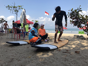 バリ島クタビーチ今日は英語でサーフレッスン。お客様は楽しくサーフィン!笑顔いっぱいのサーフィン体験になりました。バリライフのサーフィンスクールご利用ありがとうございました。