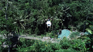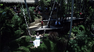 ライステラスの絶景のなかでブランコ乗り。