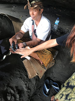 神聖な蛇が住んでいる洞窟があり、蛇に触れてきました。