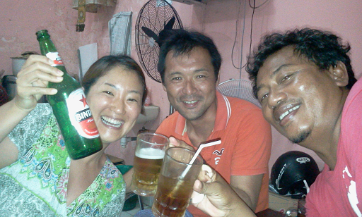 サーフィンしている間、嫁さんと海沿いのワルンで話し相手もしていただき、