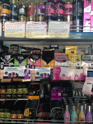 所狭しとコスメやヘアケアー用品が並んでいます。