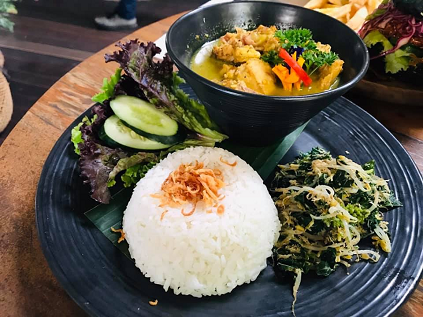 ベジタリアン料理、地元のカレー料理、ハンバーガー、